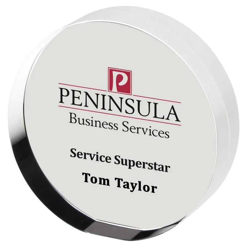Clear Glass Round Freestanding Paperweight 83mm, 102mm